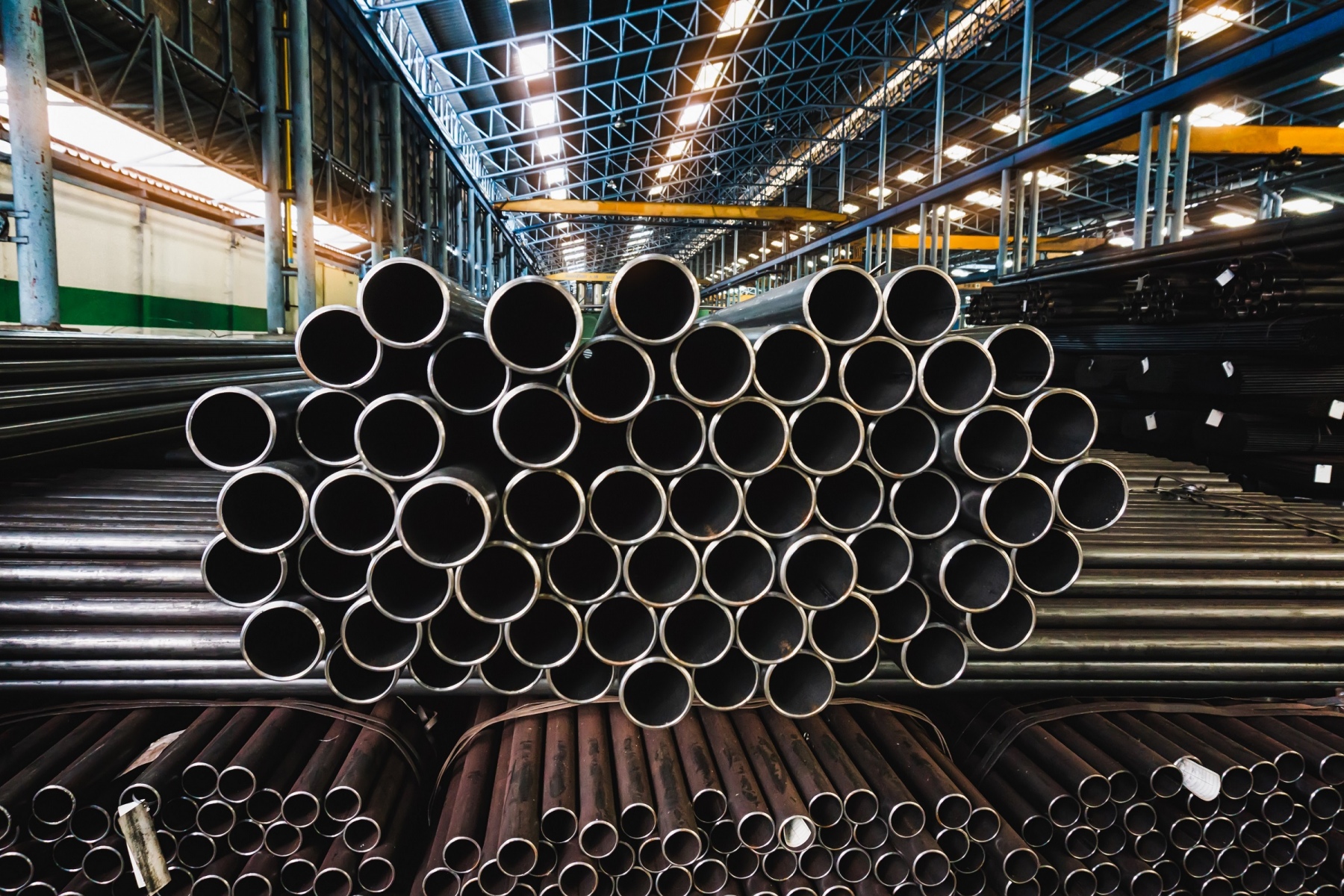 high quality Galvanized steel pipe or Aluminum and chrome stainless pipes in stack waiting for shipment in warehouse