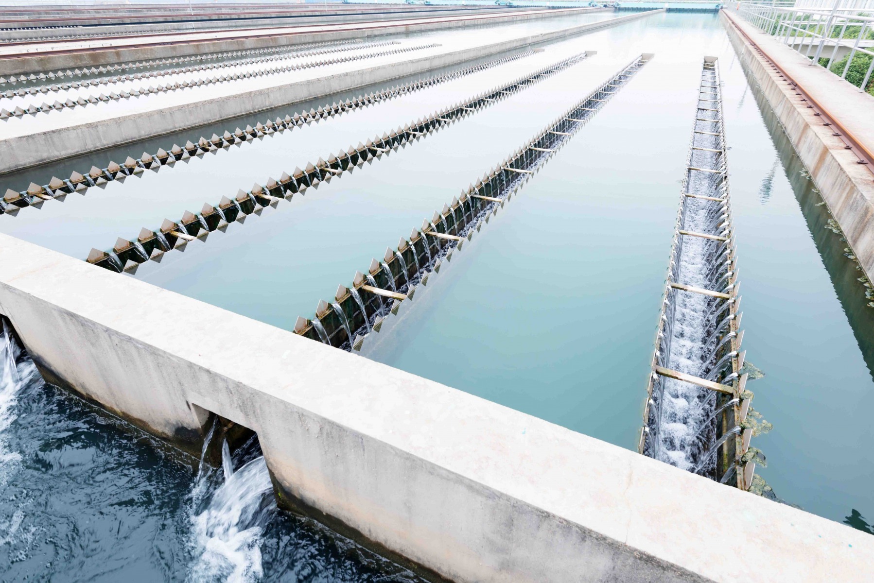 Wastewater treatment pond from industrial factory before it is released to outside.