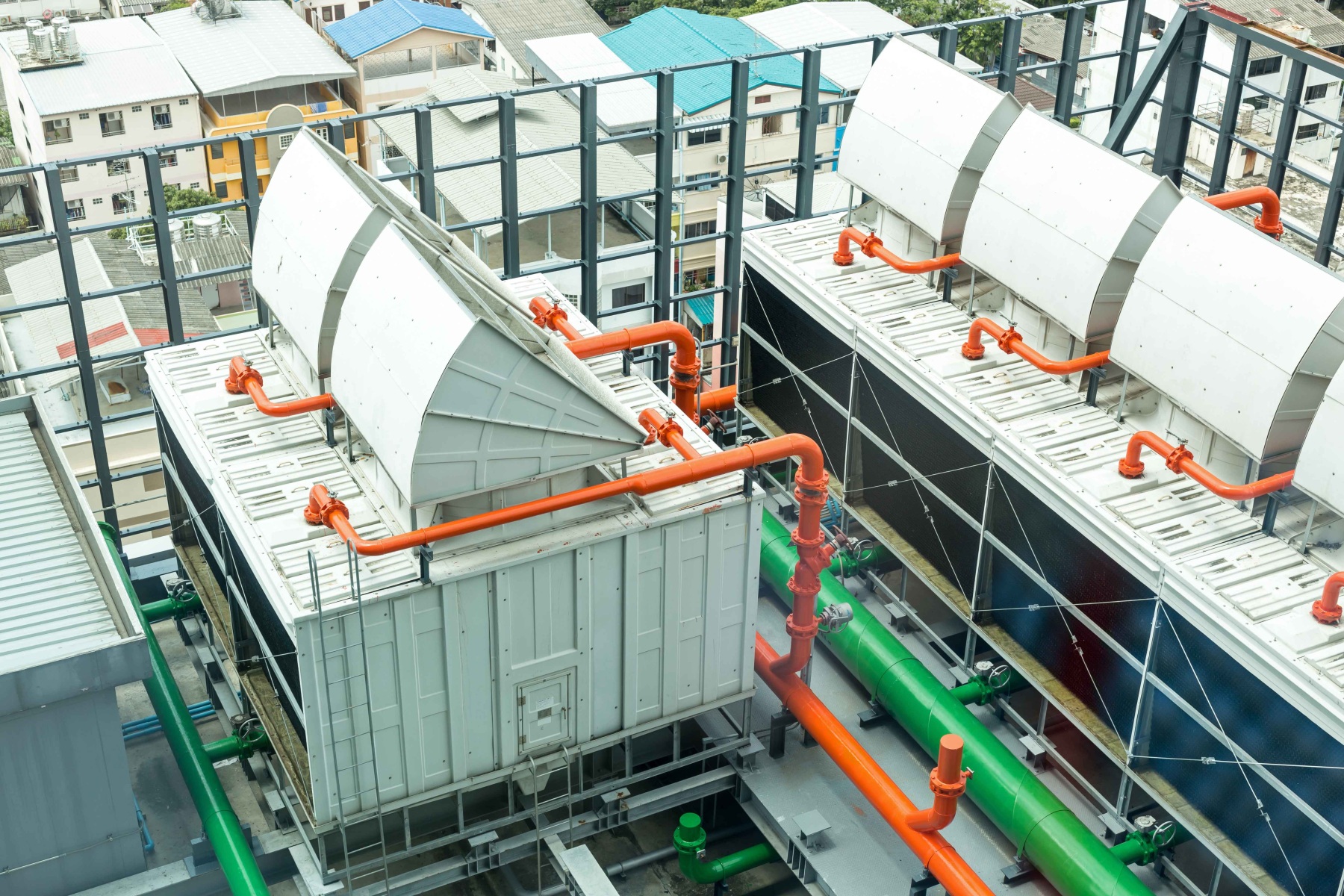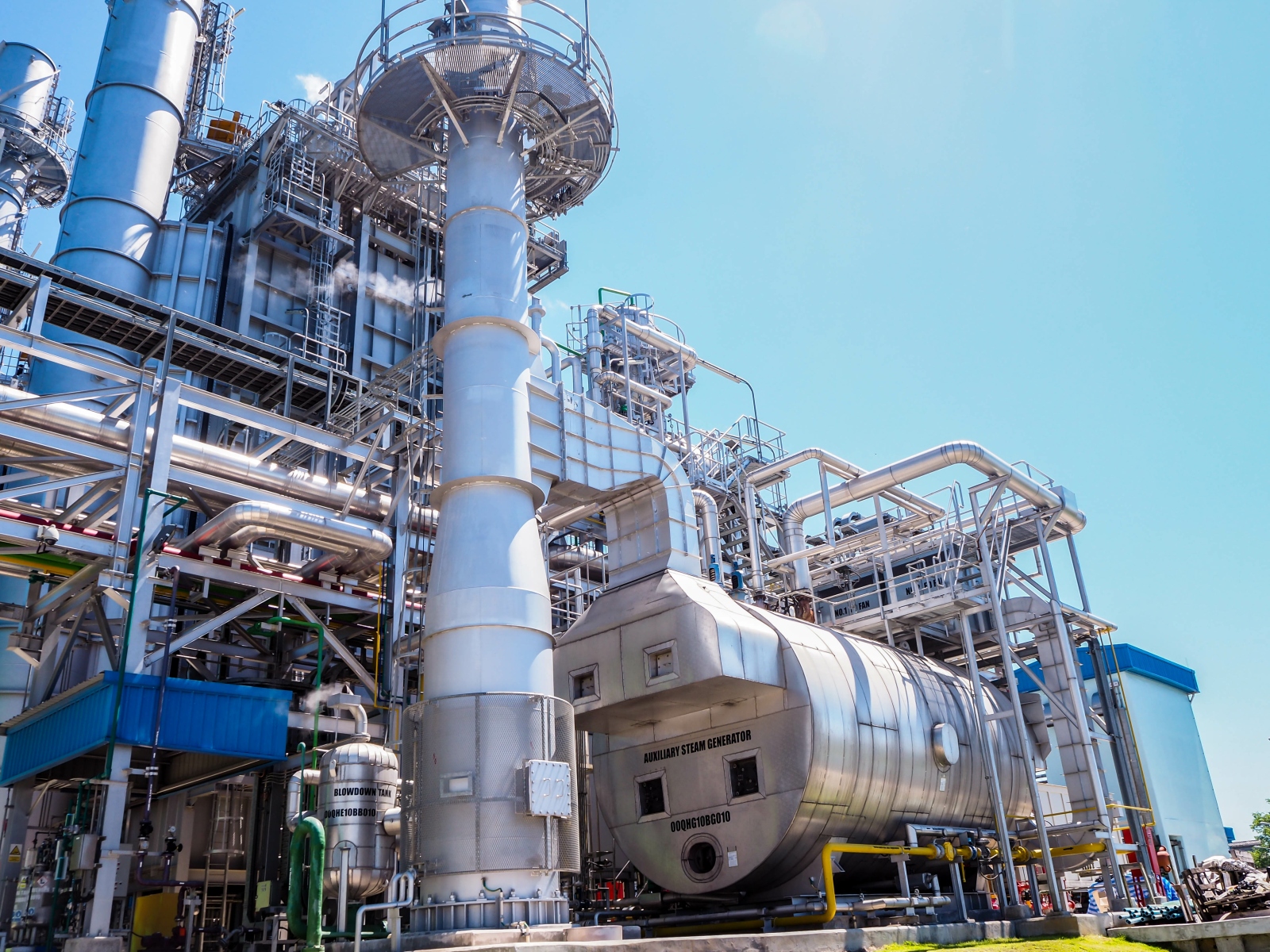 Auxiliary boiler systems from natural gas which include stack, burner, boiler and sky in power plant.