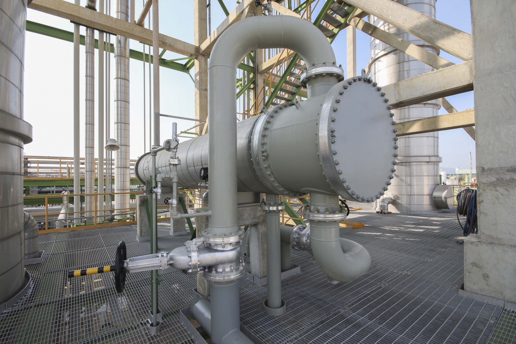 heat exchanger at an oil refinery, large size, daylight. Deep processing of oil